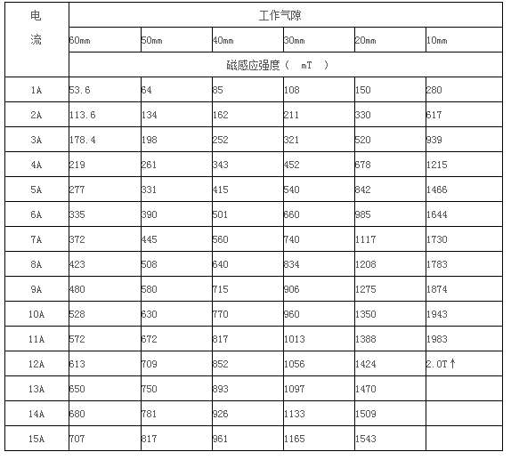 2.5、剩 磁:H ≤10mT,工作氣隙10mm時(shí),