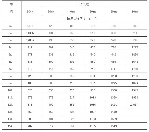 2.3、磁場(chǎng)強度: H≥2T,工作氣隙10mm時(shí)